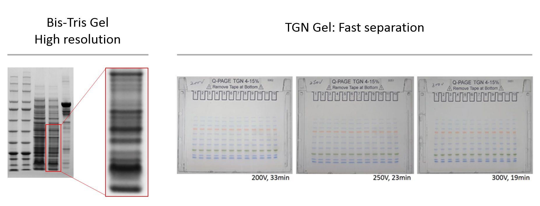 Q-PAGE™ TGN Precast Gels features fast separation of protein samples.