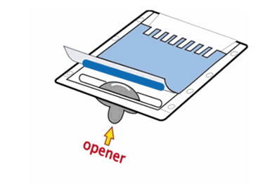 Caution: Do not directly open the cassette from the middle of bonded sides of cassette.